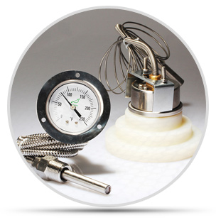 壓力式溫度計由度盤,指針,彈性元件,傳動機構,基座和毛細管,工作物質,溫包等組成。工作物質可以是氣體或者是液體。