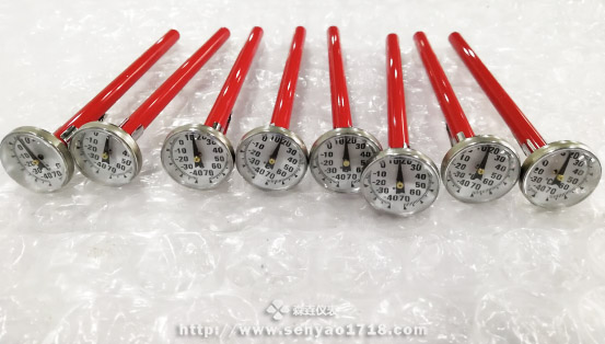 上圖實驗室用雙金屬溫度計型號是PT1005,表面直徑25mm,PC表蒙,探針127mm配紅色筆管。