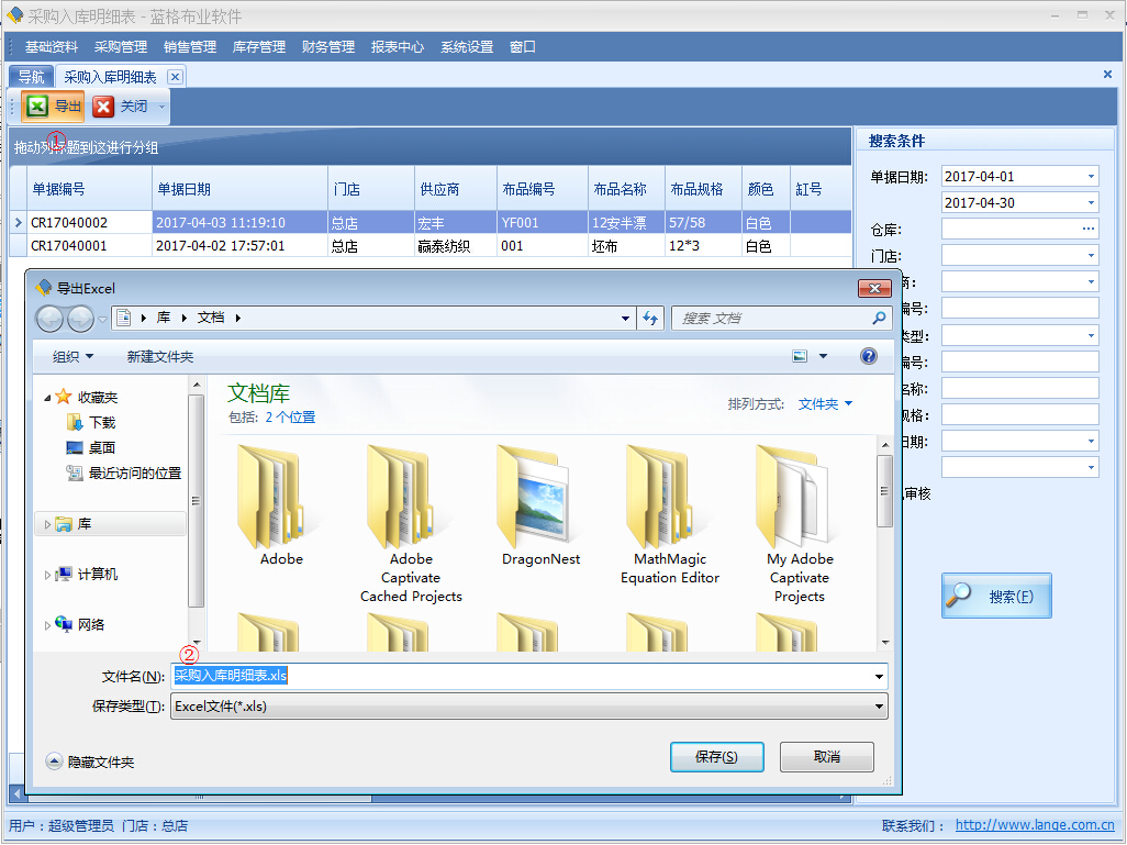 導出“采購入庫明細表”excel表格數(shù)據(jù)