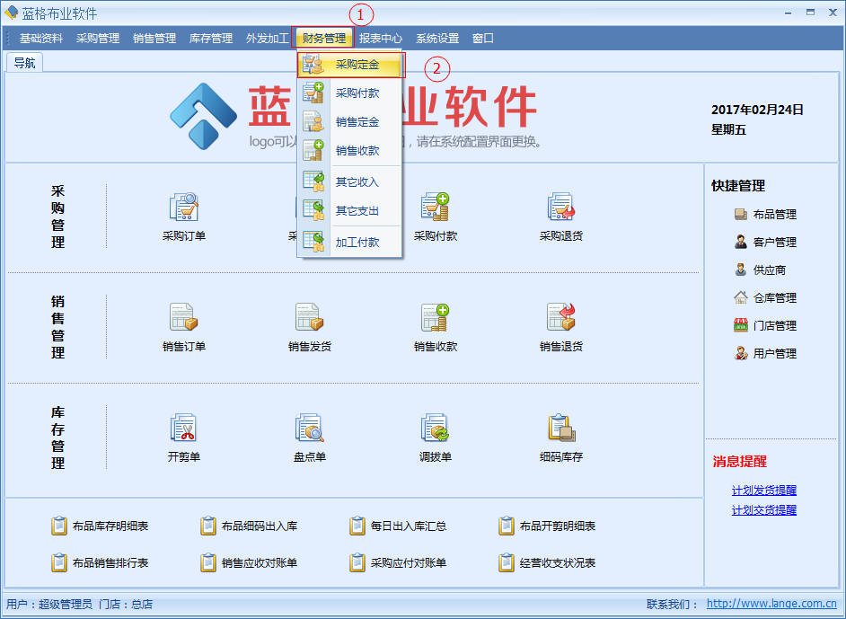 我們在向供貨商采購布匹時,有時不一定會一次支付全額,而是采取先支付一部分定金,等到后期再全部支付完。那在軟件中如何實現(xiàn)這一的操作的呢?