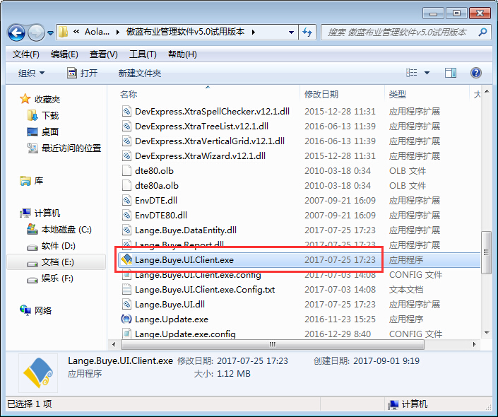 2.下載后可以把壓縮文件存放到D盤并新建一個“傲藍布業管理系統”文件夾再解壓出來,如下圖所示運行該文件: