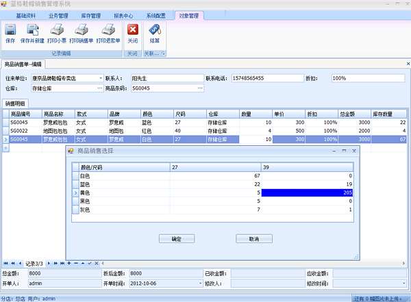 在上圖中點擊【新建】打開銷售商品單據編輯界面。填寫好單據相關的信息。然后點擊【保存】這樣就把該銷售商品錄入到系統中。當在上圖中選擇一個單據點擊【編輯】,在該界面中會顯示選擇單據的詳細信息,修改其中的項目,然后點擊【保存】,單據信息就更新完成。在商品條碼框中輸入商品條碼然后按回車鍵,系統會自動把該商品加入到銷售列表中,當該條碼對應多個商品時,會彈出商品選擇框,選擇詳細的商品。如下圖所示: