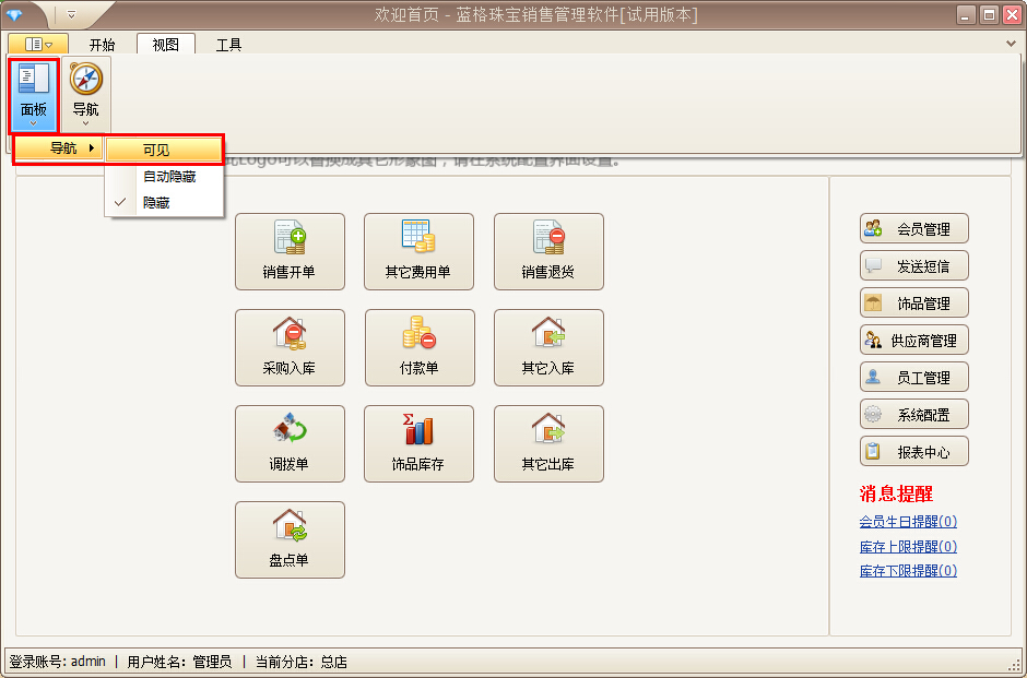 傲藍(lán)珠寶零售軟件導(dǎo)航欄異常處理方法