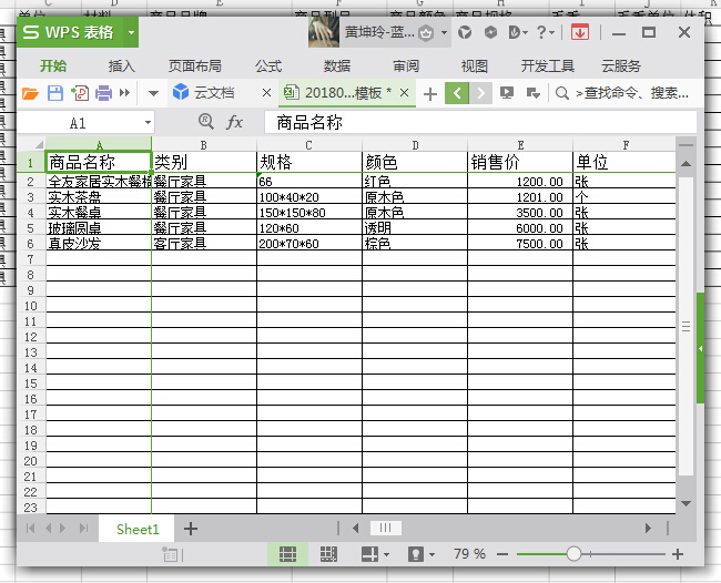 ①已有一個(gè)制成excel表格的家具產(chǎn)品資料信息,如圖: