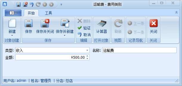 用戶可以在,其它費用窗口添加如裝車費,卸車費,維修費等不同的費用類型并輸入單價和數量。如果預設費用類型上沒有所需的具體收費類型,可以點擊“新建”按鈕建立新的收費類型。如下圖: