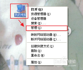 右鍵點擊“我的電腦”,在彈出的快捷菜單中選擇“管理”,打開“計算機管理”。
