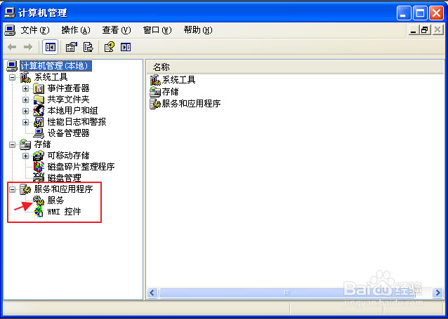 在“計算機管理”左側找到“服務和應用程序”,點擊“服務”。