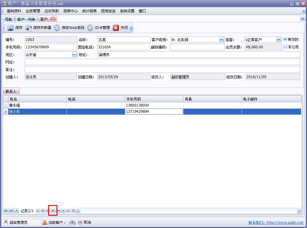 使用冷庫(kù)信息管理系統(tǒng)對(duì)客戶的一些基本信息進(jìn)行錄入處理,如客戶名稱、客戶地址以及多個(gè)聯(lián)系人信息的存儲(chǔ),在業(yè)務(wù)處理過(guò)程中,遇到需要聯(lián)系客戶的情況,調(diào)出客戶資料,就可相對(duì)應(yīng)具體負(fù)責(zé)這項(xiàng)業(yè)務(wù)的聯(lián)系人,一對(duì)一地聯(lián)系溝通,避免了一些不必要的程序。