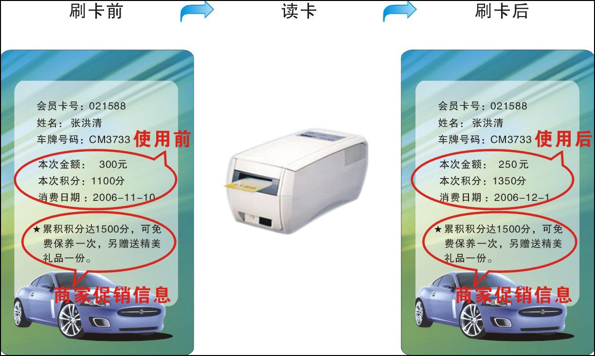 將消費(fèi)者的消費(fèi)金額/儲(chǔ)值余額/積分點(diǎn)數(shù)等情況打印于卡面上,真正做到讓客戶明明白白消費(fèi)。