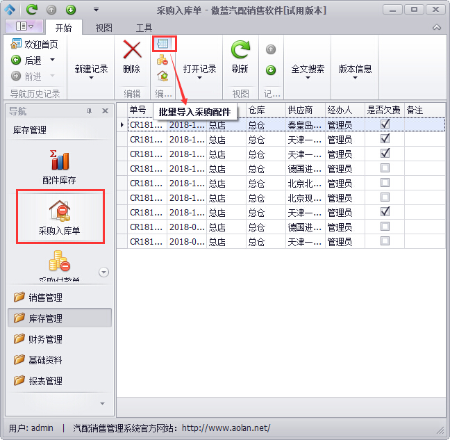 傲藍(lán)汽車配件零售店管理軟件采購(gòu)入庫(kù)單具體操作說(shuō)明,請(qǐng)點(diǎn)擊視頻鏈接了解。
