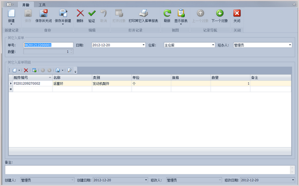 以上是對傲藍汽車配件銷售管理軟件的其它入庫單管理的基本操作步驟。