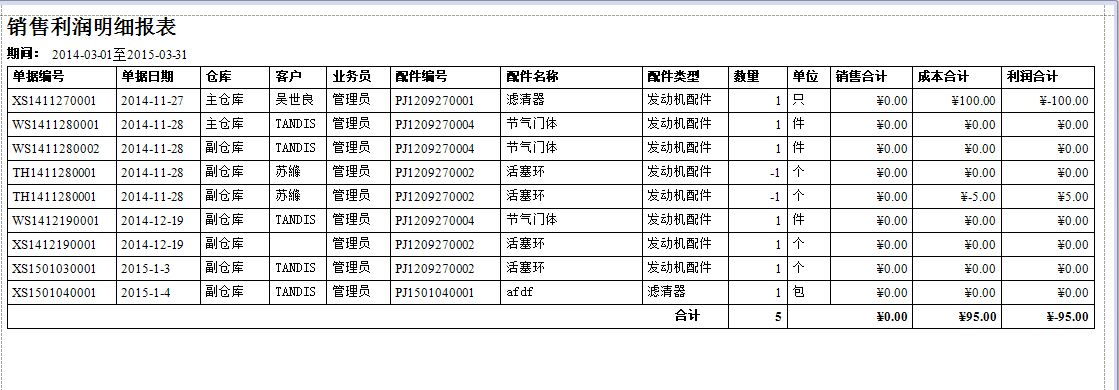 傲藍配件銷售管理軟件,有著強大的報表管理功能,如銷售利潤明細報表和銷售利潤匯總報表,可查詢單個配件的利潤和公司總的利潤,方便經營管理者對銷售進行分析,掌控銷售!在功能導航里面,找到報表管理,點擊銷售利潤明細報表和銷售利潤匯總報表,輸入需要查詢的日期即可: