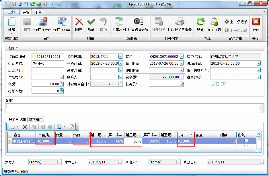 我國目前舞臺(tái)設(shè)備租賃的行業(yè),收費(fèi)模式一般有區(qū)分按天和按場的收費(fèi)。根據(jù)客戶的實(shí)際情況,傲藍(lán)舞臺(tái)租賃管理軟件有按天收費(fèi)和按場收費(fèi)兩個(gè)版本,根據(jù)行業(yè)的特殊性,到天或場的計(jì)費(fèi)方式。普通倉儲(chǔ)軟件、財(cái)務(wù)軟件無法代替。請看下圖: