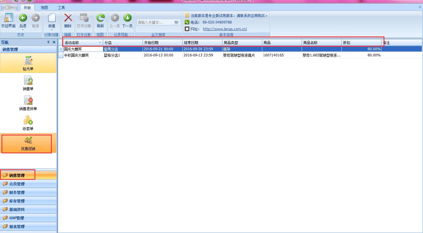 傲藍眼鏡店管理軟件,在銷售管理模塊有優惠促銷的欄目,連鎖店門,可以按門店、時間、商品種類、商品等內容來設置相應的優惠,當活動時間到了軟件上設置的時間,系統就會自動終止,商品的價格也會自動恢復,無需手動的去設置回原來的價格,更人性的管理,給門店管理帶來了更便利的管理。